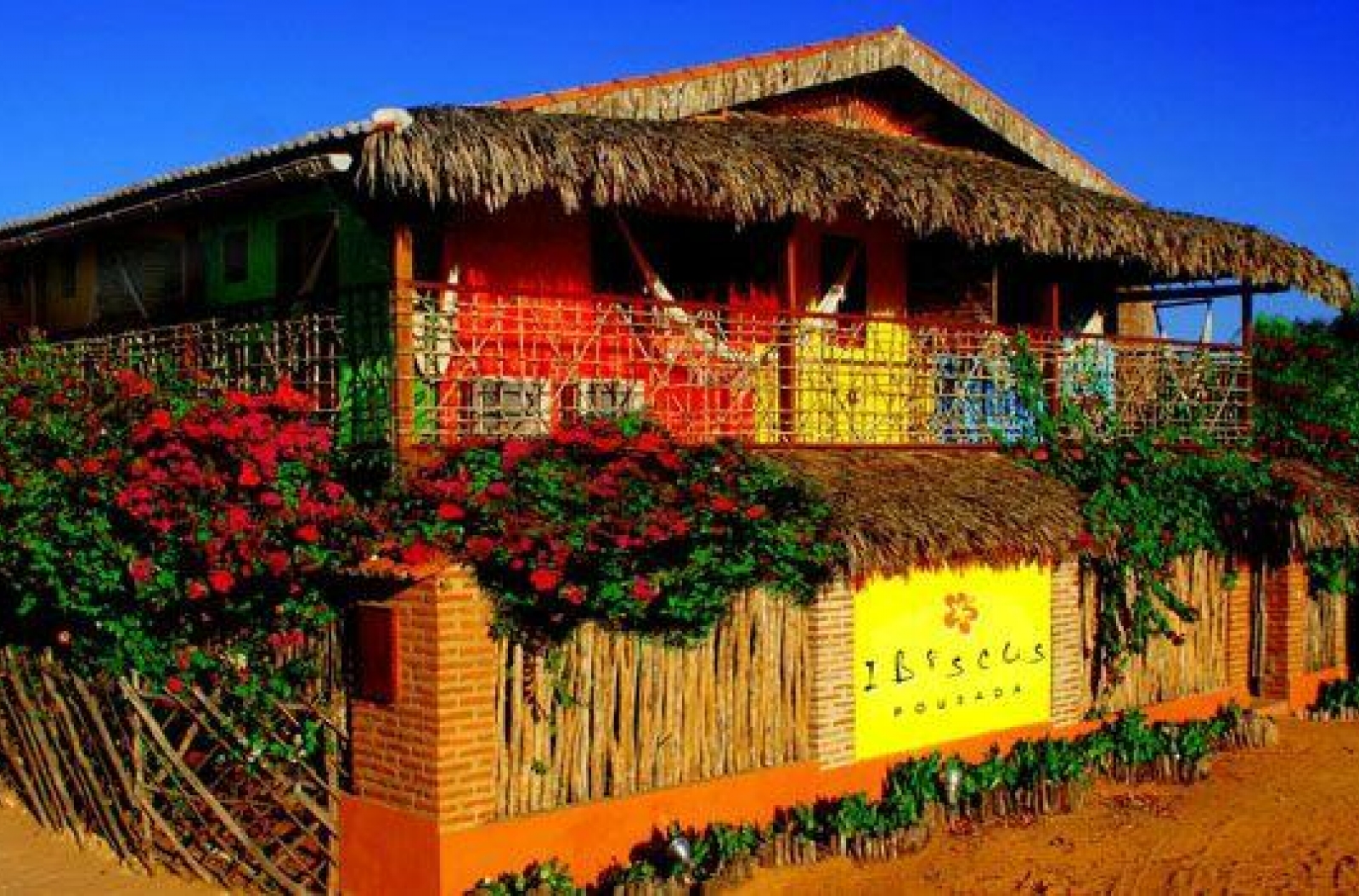 Charmosa e tranquila está localizada há 3 minutos, a pé, do centro e há 5 minutos das Praias (Jeri e Malhada). A decoração colorida torna o ambiente relaxante, no melhor estilo praia. Sem piscina. Sem café da manhã. Todos os apartamentos possuem rede nas varandas, privativas no 1o andar e compartilhadas no térreo. Pousada para não fumantes. WiFi grátis. 220V, água quente. Checkin a partir das 14hs, checkout até as 12hs. Nossa equipe, sempre disponível e atenciosa, proporciona o máximo possível de conforto, alegria e simpatia aos hóspedes. Bem-vindos a Jericoacoara! Bem-vindos à Pousada Ibiscus. Muito prazer em atendê-los !